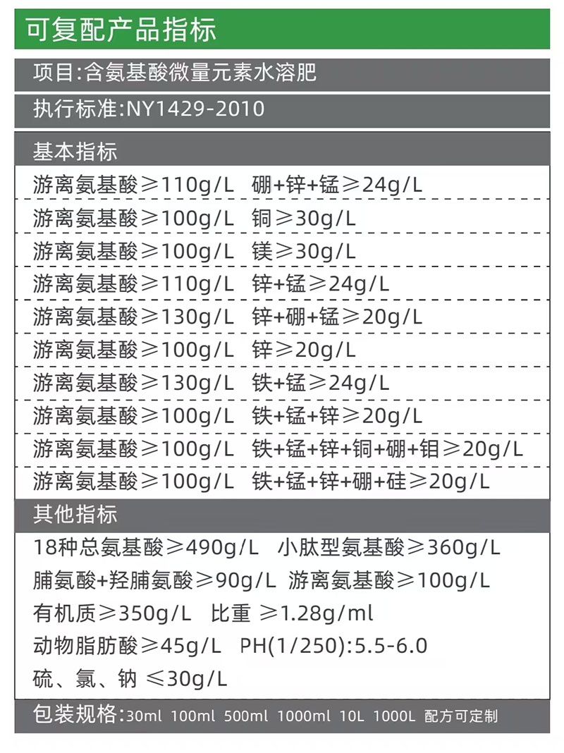 復配兼容性強:可與中微量元素、海藻提取物等物質復配,形成協同增效體系,適用于葉面噴施、滴灌沖施等多種施肥方式。